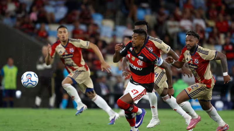 Cuando parecía que el DIM se acomodaba, Flamengo volvió a golpear antes del descanso. Un centro preciso terminó en el segundo gol, validado tras revisión del VAR pese a los reclamos del equipo colombiano.