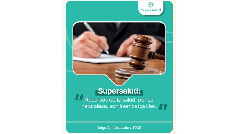 El superintendente recordó que la inembargabilidad de los recursos de la salud está amparada por un marco legal sólido: el artículo 25 de la Ley Estatutaria 1751 de 2015, el artículo 182 de la Ley 100 de 1993, el artículo 2.6.4.1.4 del Decreto 780 de 2016 y la jurisprudencia constitucional vigente, incluida la Sentencia T-760 de 2008, además de pronunciamientos recientes.