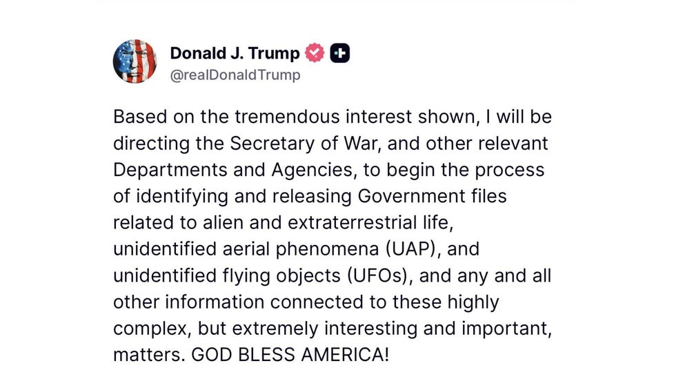El mandatario estadounidense aseguró que ordenará al secretario de Defensa, cargo equivalente al jefe del Pentágono, y a otras agencias federales pertinentes que identifiquen y empiecen a liberar estos documentos oficiales. La instrucción no solo abarca los archivos sobre extraterrestres y ovnis, sino también “cualquier otra información conectada con estos asuntos altamente complejos, pero extremadamente interesantes e importantes”, según el texto de su mensaje.